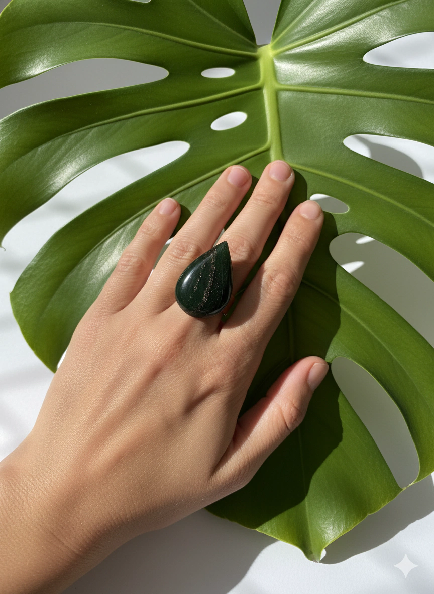 O aro regulável garante ajuste perfeito, enquanto os benefícios da pedra promovem equilíbrio, renovação e bem-estar.