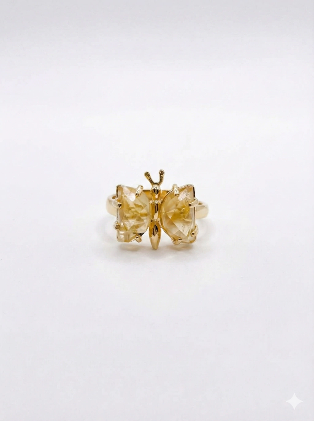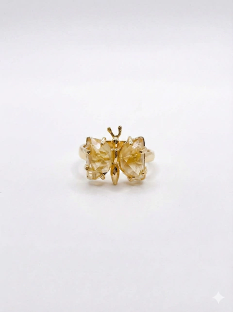 O Anel Fly Citrino é uma joia encantadora, confeccionada em metal hipoalergênico com banho de ouro 18k, garantindo beleza e conforto para peles sensíveis. Seu aro regulável proporciona ajuste perfeito, enquanto o citrino acrescenta um toque vibrante e traz benefícios energéticos, como aumento da vitalidade e positividade. Uma peça sofisticada que ilumina seu visual com charme e boas vibrações!