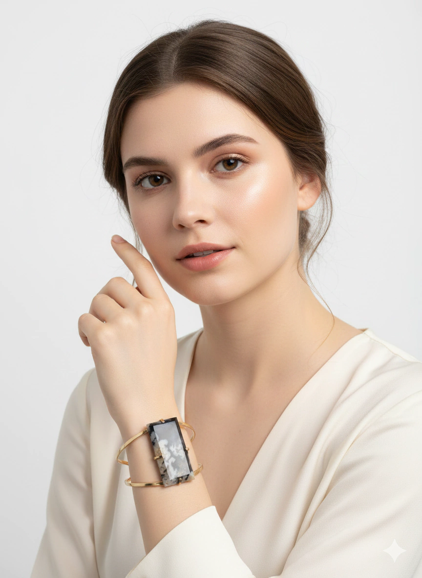 O Bracelete Flora Ágata Indiana celebra a força da Terra e a beleza das cores naturais. Combinando metal hipoalergênico e banho dourado resistente, ele valoriza o desenho único da Ágata Indiana, pedra marcada por nuances orgânicas que lembram paisagens vivas.