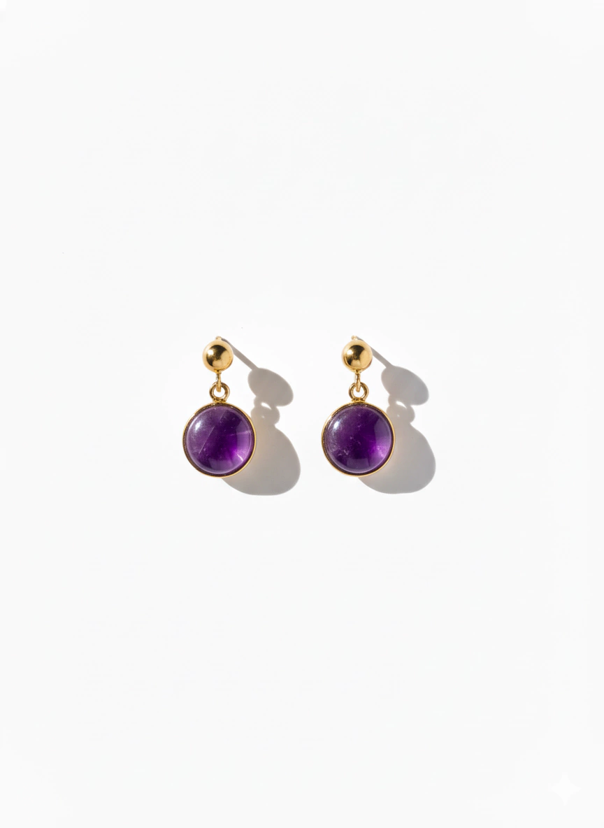 Descubra o Brinco Saturno Ametista, feito em metal hipoalergênico com banho de ouro 18k, perfeito para peles sensíveis. Leve e confortável, seu design atemporal realça a beleza natural da ametista, conhecida por seus benefícios energéticos e calmantes. Uma joia que une estilo, bem-estar e sofisticação para você brilhar em qualquer ocasião!