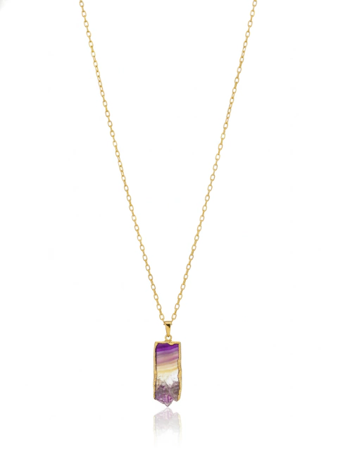 Produzido em metal hipoalergênico com banho de ouro 18k, o Colar Inanna Estalactite de Ametista é a combinação perfeita entre elegância e energia natural.