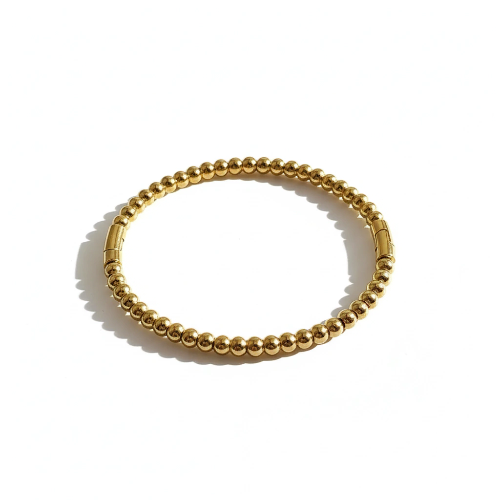 O Bracelete Poá Dourado é a escolha ideal para quem busca elegância e praticidade. Produzido em aço dourado de alta qualidade, é leve, não oxida e pode molhar, perfeito para o verão brasileiro. Sua resistência garante durabilidade sem perder o brilho, combinando com qualquer look. Aproveite um acessório sofisticado que une conforto e estilo para os dias mais quentes!